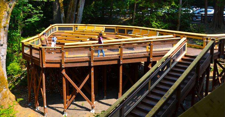 Due to the health of the trees on site, special attention was given to preserving healthy existing vegetation on site. Next to the new event center deck, a mature Douglas Fir tree snag can be seen, this tree was originally going to be preserved, but after the tree fell it created a unique habitat called a tree snag that can create opportunities for small mammals, birds, and other wildlife. This tree snag was left as a new addition to the various habitats that the site encompasses.