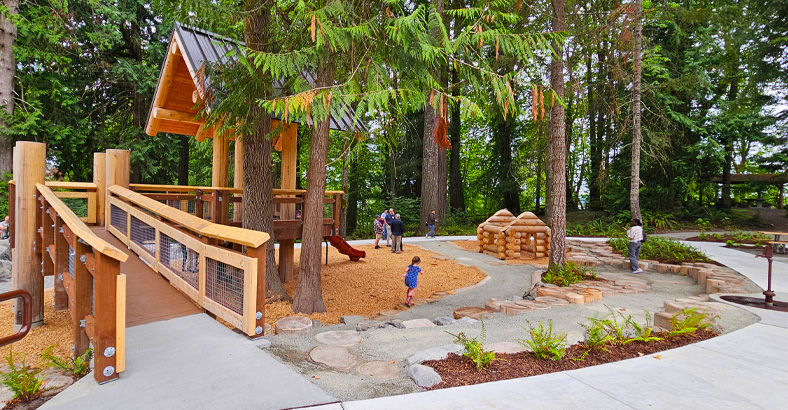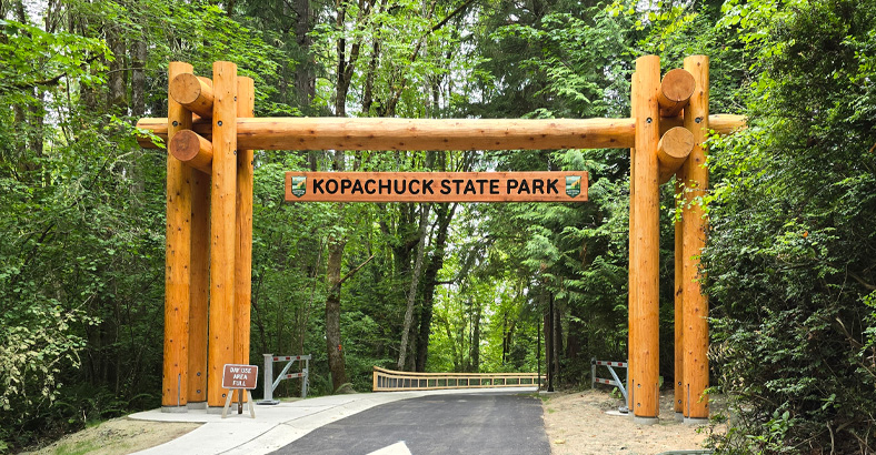 In August 2025, Kopachuck State Park was reopened as a day-use park that features a multipurpose event space, ADA accessible amphitheater, playground, picnic spaces, and improving pathways across the site to maintain access to the beach. Park visitors are introduced to everything that Washington has to offer, from a dense forest filled with moss and ferns to access to the driftwood strewn beach on Carr Inlet.